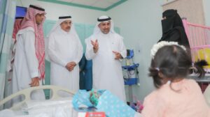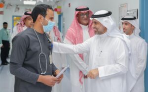 كما قام معاليه أثناء الجولة بتهنئة الممارسين الصحيين ومنسوبي المدينة وقال يتجدد العيد بهممكم العالية وإنجازاتكم المتتالية في رفع مستوى الخدمات الصحية، كما حثهم على ضرورة استمرار تقديم الخدمات على أكمل وجه خلال إجازة عيد الفطر المبارك والسعي نحو راحة المرضى ورضاهم.
