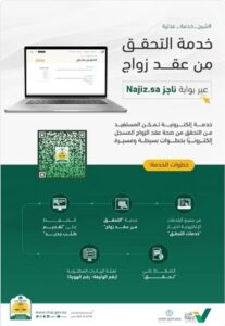 وتُعتبر خدمة “ناجز”، خدمةً إلكترونية تُمَكن المستفيد من التحقق من صحة عقد الزواج المسجل إلكترونيًّا بخطوات بسيطة وميسرة.