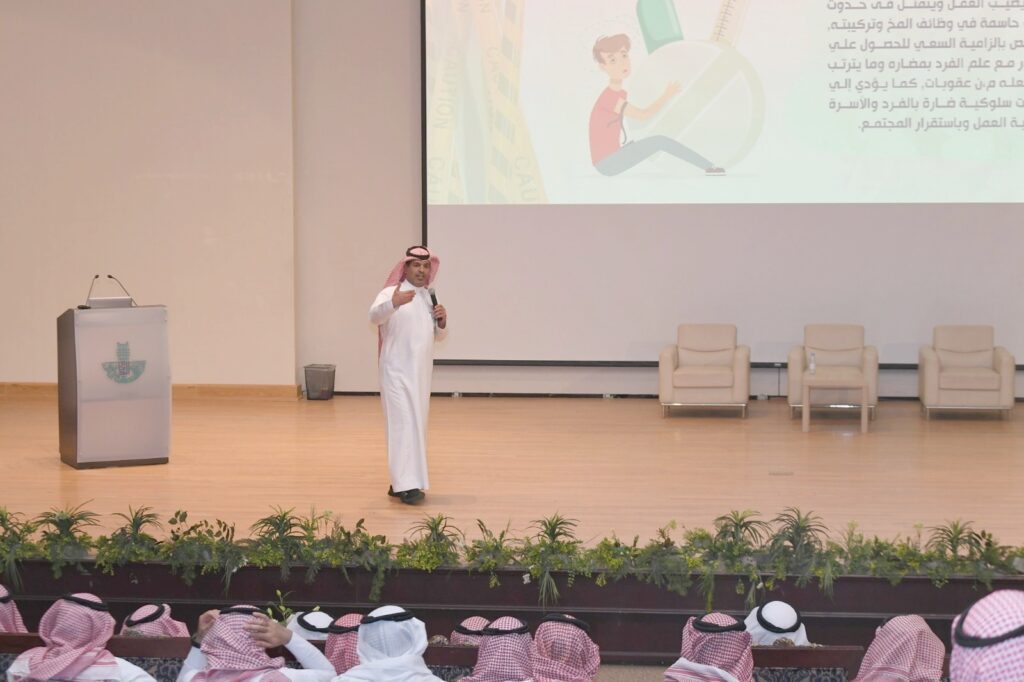 وتطرق الى مخدر ” الشبو – ( الكريستال ) “، ومسمياته والأسباب التي تؤدي لتعاطيه، مشيراً للأعراض الجسمانية، والأعراض النفسية والسلوكية، بالإضافة إلى الأدوات الدالة على التعاطي، وطرق التعاطي، والمراحل التي يمر بها متعاطي الشبو، ومراحل تأثير الشبو على الدماغ، والمضاعفات الناتجة عن التعاطي، مستعرضا برنامج العلاج وطرق الوقاية من الوقوع في إدمان الشبو.