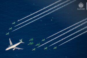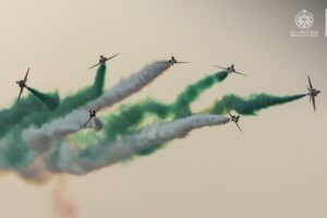وأوضحت وزارة الدفاع، أن فريق الصقور السعودية قدّم عروضًا جوية على امتداد الكورنيش؛ مشيرة إلى أن العروض زيّنت بشعار #نحلم_ونحقق.