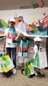 كما تم توزيع هدايا تذكارية باسم المركز من قبل فريق من المتطوعين والمتطوعات في فعاليات الاحتفاء باليوم الوطني.