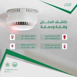 أكدت المديرية العامة للدفاع المدني أهمية وجود كاشف الدخان في المنازل، ودوره في حماية الإنسان والمحافظة على الممتلكات، لتفادي وقوع أي حادث – لا قدر الله -، وتعجيل عمليات الإخلاء.