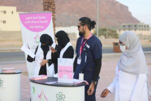 وذلك بتواجد عربة الكشف المبكر للكشف على السيدات من سن الأربعين سنه ومافوق ، برعاية تجمع المدينه المنوره الصحي والجمعية الخيرية لرعاية مرضى السرطان (أحياها) بالمدينه المنوره وكذلك شركة الصحة القابضة بمحافظة العلا والتي كانت بتنظيم جمعية التطوع بمحافظة العلا .