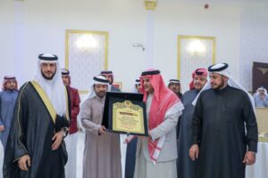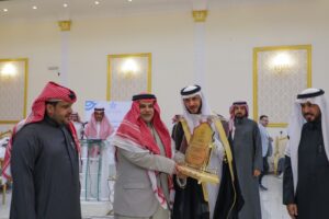وفي الختام كرم محافظ النعيرية عبدالله السيف المدير السابق حمد القحطاني مثنيا على ما بذله من جهود مع زملائه مديري الإدارات الحكومية الأخرى لخدمة المواطنين والمقيمين ، متمنيا له التوفيق في حياته القادمة.
