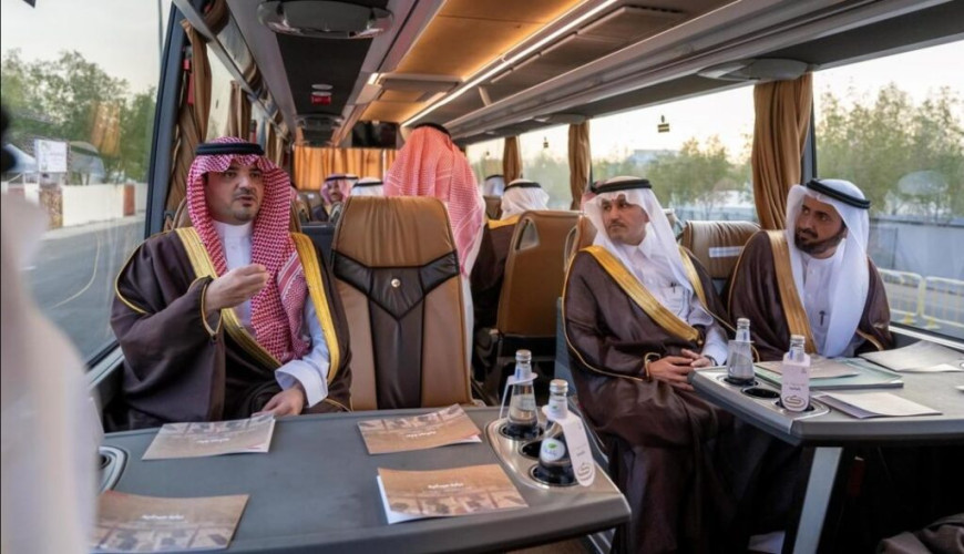 رافق سموه، صاحب السمو الملكي الأمير سعود بن مشعل بن عبدالعزيز نائب أمير منطقة مكة المكرمة نائب رئيس لجنة الحج المركزية، ومعالي وزير الحج والعمرة توفيق بن فوزان الربيعة، ومعالي وزير النقل والخدمات اللوجستية المهندس صالح بن ناصر الجاسر، ومعالي وزير الصحة الأستاذ فهد بن عبدالرحمن الجلاجل، ومعالي وزير الإعلام الأستاذ سلمان بن يوسف الدوسري، ومعالي نائب وزير الداخلية الدكتور ناصر بن عبدالعزيز الداود، ومعالي مساعد وزير الداخلية لشؤون العمليات الفريق أول سعيد بن عبدالله القحطاني، ومعالي مساعد وزير الداخلية الدكتور هشام بن عبدالرحمن الفالح، ومعالي نائب وزير الحج والعمرة الدكتور عبدالفتاح بن سليمان مشاط، ومعالي مستشار رئيس أمن الدولة الأستاذ أحمد الثقفي، ومعالي وكيل وزارة الداخلية الدكتور خالد بن محمد البتال، ومعالي وكيل وزارة الداخلية للشؤون الأمنية الأستاذ محمد بن مهنا المهنا، ومعالي مدير عام المباحث العامة الأستاذ أحمد بن عبدالعزيز العيسى، ومعالي مدير الأمن العام الفريق محمد بن عبدالله البسامي، ومدير الدفاع المدني المكلف اللواء الدكتور حمود بن سليمان الفرج، ووكيل وزارة الحج والعمرة لشؤون الحج عائض الغوينم، والرئيس التنفيذي للهيئة الملكية لمدينة مكة المكرمة والمشاعر المقدسة المهندس صالح بن إبراهيم الرشيد، والرئيس التنفيذي لشركة كدانة للتنمية والتطوير المهندس محمد بن ناصر المجماج.