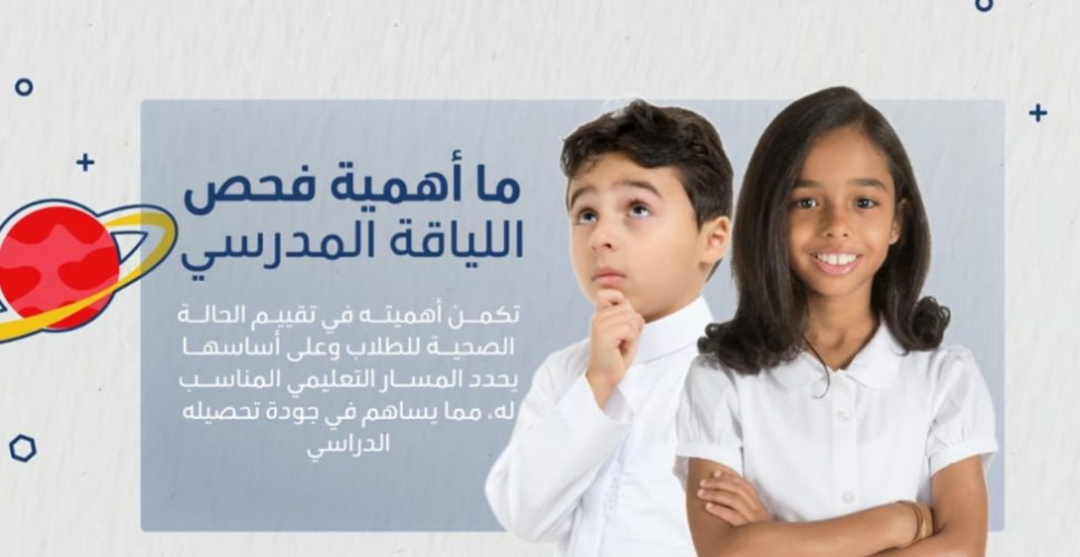 أكدت وزارة الصحة، عبر حساب منصتها التوعوية “عش بصحة”، أن أهمية فحص اللياقة المدرسي؛ تكمن في تقييم الحالة الصحية للطلاب وعلى أساسها يحدد المسار التعليمي المناسب له؛ مما يساهم في جودة تحصيله الدراسي.