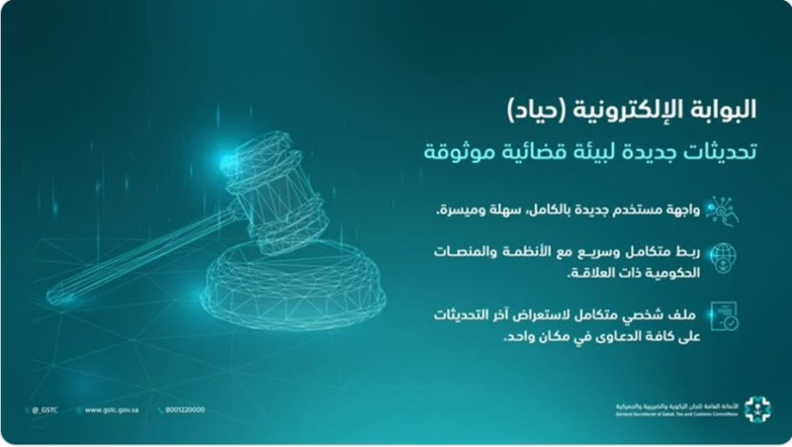 أطلقت الأمانة العامة للجان الزكوية والضريبية والجمركية تحديثها الجديد للبوابة الإلكترونية لإدارة الدعاوى “حياد”؛ ضمن مساعيها المستمرة في تبني أعلى معايير الكفاءة والتميز، وتقديم خدمات تقنية واعدة.