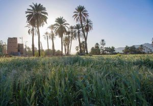 لمزارع القمح بمنطقة نجران حكايات وإرث زراعي يتكرر بشكل موسمي، حيث تتشكل هذه الأيام مساحات واسعة من حقول القمح الخضراء تتمايل سنابلها لتأذن بموسمٍ وفيرٍ اقترب حصاده حاملاً في تفاصيله الصورة الذهنية لجودة “البُر” النجراني وشهرته.