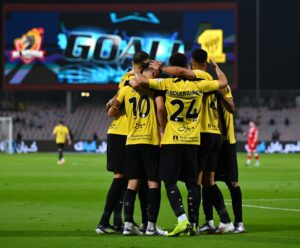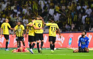 واختتم النجم الجزائري حسام عوار مهرجان أهداف الاتحاد في الوقت المحتسب بدلاً من الضائع، وبالتحديد في الدقيقة الـ(90+5)، بعد أن تبادل الكرة مع بنزيما، الذي قدم له تمريرة على طبق من ذهب، وضعته في حالة انفراد بالمرمى؛ ليسدده داخل الشباك.