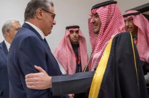 التقى صاحب السمو الملكي الأمير عبدالعزيز بن سعود بن نايف بن عبدالعزيز وزير الداخلية، في مراكش، اليوم، معالي رئيس الحكومة بالمملكة المغربية عزيز أخنوش.