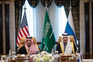 بتوجيه من صاحب السمو الملكي الأمير محمد بن سلمان بن عبدالعزيز آل سعود ولي العهد رئيس مجلس الوزراء – حفظه الله – استضافت المملكة، اليوم الثلاثاء في العاصمة الرياض، المحادثات بين روسيا الاتحادية والولايات المتحدة الأمريكية، وذلك بحضور صاحب السمو الأمير فيصل بن فرحان بن عبدالله وزير الخارجية، ومعالي وزير الدولة عضو مجلس الوزراء الدكتور مساعد بن محمد العيبان.