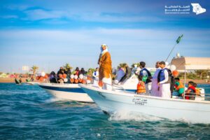 فيما انطلقت المسيرة البحرية في تمام الساعة الخامسة من مساء يوم الجمعة الموافق ٢٠٢٥/٠٢/٢١ من مرسى خليج الجار بالواجهة البحرية بينبع الصناعية مرورًا بمركز اعداد القادة، ومن ثم إلى جزيرة النورس، قبل العودة إلى نقطة البداية.