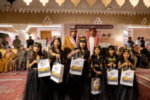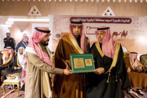كما قدمت دروع تذكارية للمحافظ والجهات المشاركة، وقام المحافظ بتوزيع الهدايا على الحضور. واختتم الاحتفال بالعرضة السعودية.