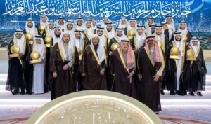 وفي ختام الحفل، كرّم سمو الأمير فيصل بن بندر، أعضاء لجنة التحكيم والفائزين في فروع المسابقة الستة بجوائز نقدية تتجاوز سبعة ملايين ريال مع درع التميز، كما تسلّم سموه هدية تذكارية بهذه المناسبة، والتقطت الصور التذكارية مع الفائزين في فروع المسابقة.