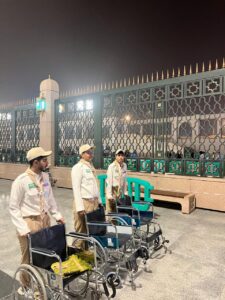 باشرت جمعية الكشافة العربية السعودية، مع بداية ايام شهر رمضان المبارك لهذا العام ١٤٤٦ هـ، أعمالها بحزمة من الخدمات التطوعية لزوار المسجد النبوي الشريف، بمشاركة 350 من فتيان وفتيات الكشافة و20 قائد وقائدة ، تمثلت هذه الخدمات في ارشاد التائهين ودفع عربات كبار السن وتنظيم عبور المشاة وتنظيم المصلين ودخول النساء إلى المصليات المخصصة لهم، ورعاية الأطفال التائهين بالتعاون مع كافة القطاعات الحكومية المختلفة . من خلال نشر فرق كشفية حصلت على العديد من الدورات واللقاءات المؤهلة للعمل ، تمثلت في ارشاد الزائرين، كما تقوم جمعية الكشافة العربية السعودية بنشر فرق كشفية بمسجد قباء والساحات المحيطة.