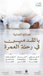 وأوضحت الوزارة أن اتباع بعض الإرشادات البسيطة يمكن أن يسهم في تخفيف الإرهاق وضمان أداء المناسك بسهولة، داعيةً المعتمرين إلى: تجنب المشي حافياً لمسافات طويلة لحماية القدمين من الإجهاد والإصابات، وارتداء حذاء مريح ومناسب للمشي لضمان الدعم اللازم للقدمين أثناء الحركة، والتوقف للراحة عند الشعور بالتعب للحفاظ على النشاط واستكمال العمرة براحة وطمأنينة.