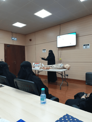 وأوضحت فاطمة الصالح أهمية حقيبة الإسعافات الأولية وطرق تقديم الإسعافات الأولية في الحالات الطارئة كالإغماء وانخفاض السكري والصرع والرعاف والجروح والحروق ونحوها وتوضيح الأخطاء الشائعة للإسعافات الأولية مع عرض مقاطع فيديو تعليمية.