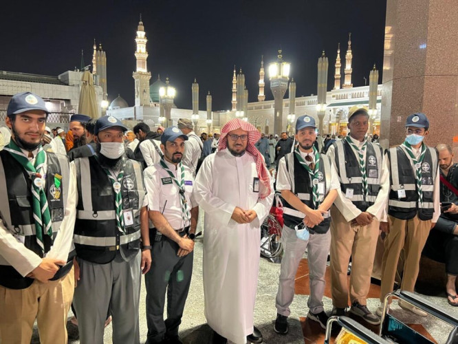 قام مدير عام التعليم بمنطقة المدينة المنورة الاستاذ ناصر بن عبدالله العبدالكريم بزيارة تفقدية للمركز الرمضاني لمعسكر خدمة زوار المسجد النبوي وكشافة وزارة التعليم والتي تعمل تحت مظلة جمعية الكشافة العربية السعودية، حيث اطمئن من خلال الزيارة على سير أعمال الخدمات المختلفة المقدمة من ابناءه فتيان وفتيات الكشافة والجوالة.