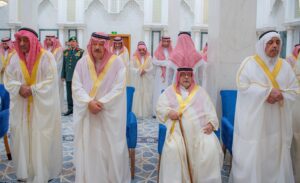 وأدى الصلاة مع خادم الحرمين الشريفين ـ أيده الله ـ، كل من صاحب السمو الأمير خالد بن فهد بن خالد، وصاحب السمو الملكي الأمير مقرن بن عبدالعزيز آل سعود، وصاحب السمو الملكي الأمير منصور بن سعود بن عبدالعزيز، وصاحب السمو الأمير خالد بن سعد بن فهد، وصاحب السمو الأمير فهد بن عبدالله بن عبدالعزيز بن مساعد، وصاحب السمو الملكي الأمير سطام بن سعود بن عبدالعزيز، وصاحب السمو الأمير فيصل بن سعود بن محمد، وصاحب السمو الملكي الأمير الدكتور عبدالعزيز بن سطام بن عبدالعزيز مستشار خادم الحرمين الشريفين، وصاحب السمو الملكي الأمير سعود بن مشعل بن عبدالعزيز نائب أمير منطقة مكة المكرمة، وصاحب السمو الملكي الأمير سلطان بن فهد بن سلمان بن عبدالعزيز، وصاحب السمو الأمير سعود بن عبدالله بن جلوي محافظ جدة، وصاحب السمو الملكي الأمير راكان بن سلمان بن عبدالعزيز، وصاحب السمو الملكي الأمير فيصل بن أحمد بن سلمان بن عبدالعزيز، وصاحب السمو الملكي الأمير أحمد بن فيصل بن سلمان بن عبدالعزيز، وعدد من أصحاب المعالي الوزراء وكبار المسؤولين.