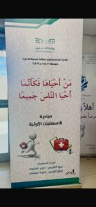مبادرة التدريب على الإسعافات الاولية في فناء المدرسة بحضور جميع طاقم المدرسة وتهدف المبادرة إلى نشر ثقافة الإسعافات الاولية وزيادة الوعي باهميتها لإنقاذ الأرواح في المواقف الطارئة وذلك بالتعاون مع جمعية الهلال الأحمر قدم المبادرة المعلمات