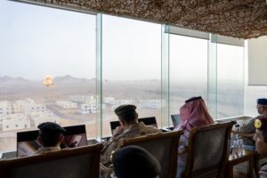 وفور وصول سموه، عزف السلام الملكي، ثم استأذن مدير مركز العمليات الخاصة المشترك للتمرين سمو وزير الدفاع لتقديم شرح عن المركز، اطلع خلاله سمو وزير الدفاع على أدوار ومسؤوليات المركز، ثم شاهد سموه عرضًا مرئيًّا عن القوات الخاصة “النخبة”، والإمكانات التقنية والتنظيمية، التي تجسد رؤية الوزارة لتطوير قوات متخصصة ذات جاهزية عالية.