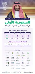 الجدير بالذكر أن المملكة حقّقت أخيراً قفزة نوعية بتقدُّمها (25) مرتبة في مؤشر الأمم المتحدة لتطوّر الحكومة الإلكترونية لعام (2024)؛ لتصبح ضمن الدول الرائدة عالمياً، كما احتلت المركز (الرابع) عالمياً، و(الأول) إقليمياً، و(الثاني) على مستوى مجموعة العشرين في مؤشر الخدمات الرقمية، إضافة إلى تحقيق المركز (السابع) عالمياً في مؤشر المشاركة الإلكترونية، والمركز (الثالث) لمدينة الرياض من بين (193) مدينة حول العالم.