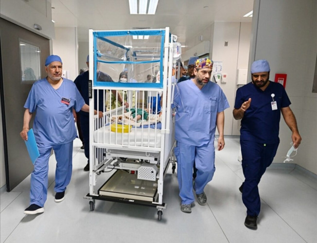 تمكّن الفريق الطبي والجراحي السعودي التابع للبرنامج السعودي للتوائم الملتصقة -بحمد الله- اليوم من فصل التوأم الطفيلي المصري “محمد عبدالرحمن جمعة”، بمستشفى الملك عبدالله التخصصي للأطفال بمدينة الملك عبدالعزيز الطبية للحرس الوطني بالرياض، بعد عملية جراحية معقدة استغرقت (8) ساعات، نفذت على (6) مراحل، وشارك فيها (26) من الاستشاريين والأخصائيين والكوادر التمريضية والفنية من تخصصات التخدير وجراحة الأعصاب وجراحة الأطفال وجراحة التجميل وبقية التخصصات المساندة.