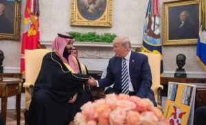 وبناءً على توجيهات خادم الحرمين الشريفين الملك سلمان بن عبدالعزيز آل سعود -حفظه الله- توجّه سمو ولي العهد إلى الولايات المتحدة الأمريكية في مارس 2018، في زيارة رسمية التقى فيها فخامة رئيس الولايات المتحدة الأمريكية دونالد جي ترمب في البيت الأبيض بواشنطن، حيث جرى التأكيد على عمق الشراكة التاريخية والإستراتيجية بين البلدين، وثمّن القائدان التقدم الذي تحقق في تعزيز الشراكة الإستراتيجية السعودية-الأمريكية، كما بحثا سبل تطوير التعاون في مختلف المجالات، بما في ذلك إبرام صفقات تجارية جديدة تسهم في إيجاد الوظائف، وتعزيز برنامج الإصلاح الاقتصادي للمملكة ضمن رؤية المملكة 2030.