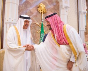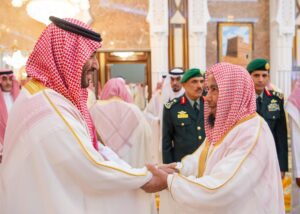 نيابة عن خادم الحرمين الشريفين الملك سلمان بن عبدالعزيز آل سعود القائد الأعلى لكافة القوات العسكرية ـ حفظه الله ـ، استقبل صاحب السمو الملكي الأمير محمد بن سلمان بن عبدالعزيز آل سعود ولي العهد رئيس مجلس الوزراء، في الديوان الملكي بقصر منى، اليوم، المهنئين بعيد الأضحى المبارك، وهم دولة السيد محمد شهباز شريف رئيس الوزراء في جمهورية باكستان الإسلامية، وأصحاب السمو الملكي الأمراء، وسماحة مفتي عام المملكة، وأصحاب الفضيلة العلماء والمشايخ، وكبار المدعوين من دول مجلس التعاون لدول الخليج العربية، وأصحاب المعالي الوزراء، وقادة القطاعات العسكرية المشاركة في حج هذا العام، وقادة الأسرة الكشفية في المملكة المشاركة في الحج.