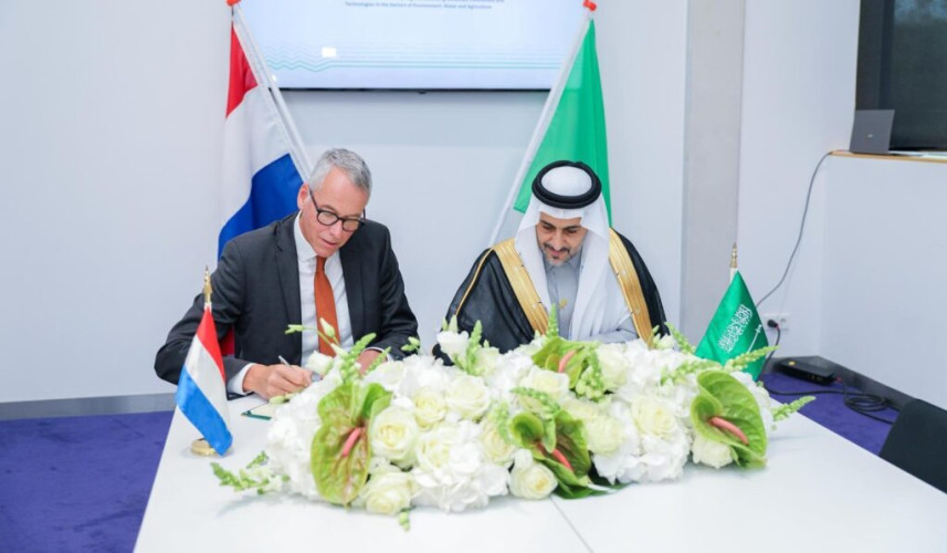 وقعت المملكة العربية السعودية ومملكة هولندا، عددًا من الاتفاقيات ومذكرات التفاهم بين جهات منظومة البيئة والمياه والزراعة، وعدد من الجهات والشركات السعودية والهولندية، باستثمارات تتجاوز (428) مليون ريال؛ لتطوير وتوطين التقنيات الحديثة في المجالات البيئية والمائية والزراعية.