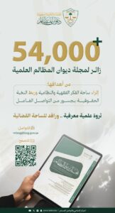 أعلن ديوان المظالم أن عدد زوار مجلة ديوان المظالم العلمية عبر البوابة الرقمية التابعة له قد تجاوز 54 ألف زائر منذُ إصدار العدد الأول قبل خمسة أعوام من الآن، وهي المجلة العلمية المختصة بقوانين وتشريعات القضاء الإداري، ويقوم على تحرير واعتماد موادها نخبة من المهتمين والمختصين من قضاة ومنسوبي ديوان المظالم.