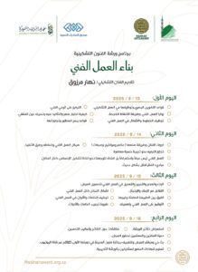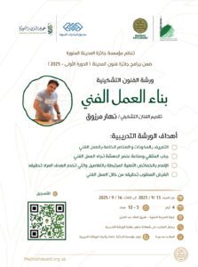 ضمن برنامج جائزة فنون المدينة في دورتها الأولى 2025، تنظم مؤسسة جائزة المدينة المنورة، ورشة تدريبية في الفنون التشكيلية بعنوان: “بناء العمل الفني”، والتي تهدف إلى اكتشاف الإمكانيات الفردية للمتدربين، وتدعم نقاط القوة الإبداعية لديهم، وتدريبهم على إنتاج أعمال فنية متكاملة من حيث التكوين والتقنيات والرسالة البصرية، وتمكينهم من تقديم أعمال مؤهلة للعرض في قاعات متخصصة، وتقام الورشة.