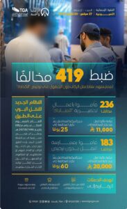 واصلت الفرق الرقابية في الهيئة العامة للنقل جولاتها التفتيشية، وضبطت خلال الفترة من السبت حتى الجمعة (27 سبتمبر – 3 أكتوبر) (419) مخالفًا لممارستهم نشاط نقل الركاب دون الحصول على ترخيص “الكدادة”، حيث أُوقعت بحقهم الإجراءات النظامية التي تضمنت حجز المركبات وفرض غرامات مالية، وذلك في مختلف مناطق المملكة، بالتعاون مع عدد من الجهات المعنية.