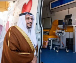 واستمع سموه إلى شرحٍ موجز عن مكونات العربة وخدماتها الميدانية؛ التي تهدف إلى دعم بنوك الدم وتلبية احتياجات المرضى ذوي الفصائل النادرة عبر الوصول إلى المتبرعين في مواقعهم، وفق أعلى المعايير والمواصفات الطبية.