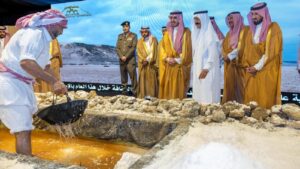 بعد ذلك زار سمو أمير منطقة الجوف معرض منتجات الملح المصاحب للمهرجان، واطَّلع على أركانه التي تعكس تاريخ استخراج الملح وتُظهر أساليب إنتاجه وتنوّع استخداماته الاقتصادية.