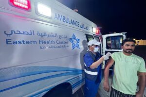 تواصل الفرق الطبية المتنقلة التابعة لمستشفى النعيرية العام – أحد مكونات تجمع الشرقية الصحي – تنفيذ الحملة الوطنية للتطعيم ضد الإنفلونزا الموسمية من خلال زيارات ميدانية شملت الإدارات الحكومية والمؤسسات التعليمية والحدائق العامة وعدداً من المواقع الحيوية لتقديم اللقاح للمواطنين والمقيمين في أماكن تواجدهم.