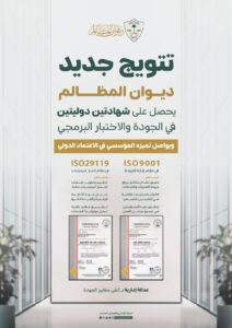 وتُعد هاتان الشهادتان من الاعتمادات الدولية المعتمدة التي تمنحها المنظمة الدولية للتوحيد القياسي (ISO) للجهات التي تحقق التميز في أنظمتها الإدارية والتقنية، بما يعكس تبنّي ديوان المظالم لاستراتيجيات التحسين المستمر، وجودة الخدمات والمخرجات، وتعزيز ثقة المستفيدين، كما يبرهن الديوان بهذا الاعتماد على قدراته في تطوير واختبار أنظمته الرقمية وفق أحدث المعايير العالمية، إلى جانب امتلاكه منظومة متكاملة لإدارة الجودة والتحسين المستمر في مختلف عملياته وخدماته.