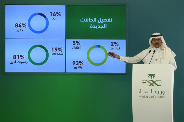 كما ذكر بأن الحالات المسجلة اليوم وعددها (1552)19٪ من الحالات تعود لسعوديين وعددهم (301) حالة، و 81% لغير سعوديين وعددهم (1251)، و 16% من الحالات للإناث، وعددهن (251) حالة، و84% لذكور وعددهم (1301) حالة.