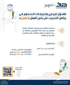 أعلن صندوق تنمية الموارد البشرية(هدف)، عن شمول خريجي وخريجات الدبلوم من المعاهد والكليات الفنية والصحية والإدارية في المملكة، في برنامج التدريب على رأس العمل(تمهير)، بالإضافة إلى الحاصلين على درجة البكالوريوس من السعوديين والسعوديات.