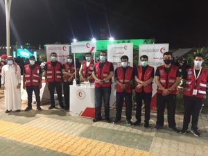 كما تمت المشاركة بالفرق التطوعية بنقاط الفرز البصري والتي اقيمت ببعض جوامع المنطقة أثناء صلاة الجمعة تطبيقاً للإجراءات الإحترازية وللتباعد الجسدي حرصاً على سلامة المصلين.