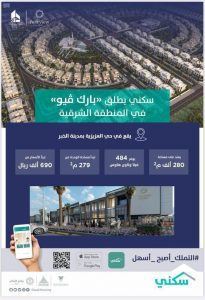 أعلن برنامج سكني التابع لوزارة الإسكان، عن إطلاق مشروع سكني جديد بارك فيو في محافظة الخبر، وإتاحة حجزه إلكترونياً من خلال موقع وتطبيق سكني على الرابط https:sakani.housing.saproject546770، وذلك ضمن جهود البرنامج لتسهيل التملك بتوفير حلول إلكترونية ميسرة واستحقاق فوري.