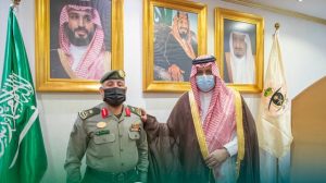 وفي ختام الزيارة قلّد سمو أمير منطقة حائل, مدير جوازات المنطقة المكلف اللواء عبدالله بن راجح المشيخي رتبته الجديدة لواء بعد صدور الأمر السامي بترقيته.
