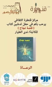 احتفت الكاتبة “ندى الطيار” مساء السبت المنصرم؛ بتدشين كتابها “قصة نجاح” في مركز وادي الأعمال بالعاصمة الرياض، وذلك في احتفال أقامه مركز قنطرة الثقافي التابع لديوانية آل حسين التاريخية.