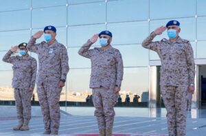نيابة عن صاحب السمو الملكي الأمير محمد بن سلمان بن عبدالعزيز ولي العهد نائب رئيس مجلس الوزراء وزير الدفاع -حفظه الله -، رعى معالي رئيس هيئة الأركان العامة الفريق الأول الركن فياض بن حامد الرويلي، اليوم، حفل تخريج الدورة ٩٩ من طلبة كلية الملك فيصل الجوية بالرياض مع مراعاة كافة الإجراءات والتدابير الاحترازية لجائحة كورونا، حيث كان في استقبال معالية في مقر الحفل سمو قائد القوات الجوية الفريق الركن تركي بن بندر بن عبدالعزيز.