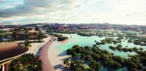وتضم كذلك فنادق، ووحدات سكنية ومرافقاً تجارية وترفيهية؛ إضافة إلى البنية التحتية التي تعتمد على الطاقة المتجددة والحفاظ على المياه وإعادة استخدامها.