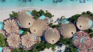 من جهته، قال مدير الاستديو في شركة “فوستر وشركاه” جيرارد إيفيندين: “استلهمنا رؤيتنا لجزيرة شُريرة من حالتها الطبيعية، فتصميم الفنادق يوحي وكأنها أخشاب طافية جرفتها الأمواج إلى الشطآن لتستقر بين الكثبان الرملية.