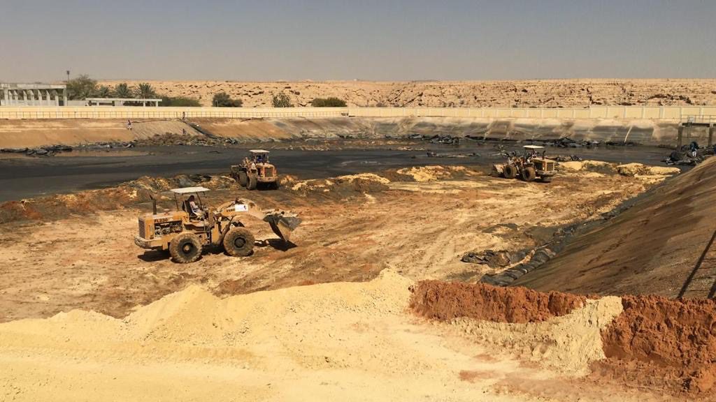 وشملت صيانة الخزان تجفيف ونزح المياه بواسطة المضخات وإزالةرواسب بحوالي 39.446 متر مكعب وتنظيف سطح الخزان وتبطين الأرضية بمادة البولي إيثيلين عالي الكثافة HDPE Liner وأُستخدم في عملية الصيانة أكثر من 45 معدة بمعدل 500 ساعة عمل في 30 يوماً لكي يعود الخزان للعمل من جديد.