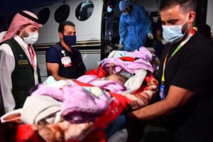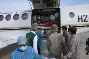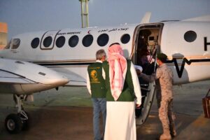 إنفاذا لتوجيهات خادم الحرمين الشريفين الملك سلمان بن عبدالعزيز آل سعود -حفظه الله- وصل التوأم السيامي اليمني “يوسف وياسين” برفقة والديهما إلى قاعدة الملك سلمان الجوية بالرياض اليوم قادما من مدينة المكلا بحضرموت عبر طائرة الإخلاء الطبي الجوي، بمساندة من قوات تحالف دعم الشرعية باليمن بقياده المملكة العربية السعودية.
