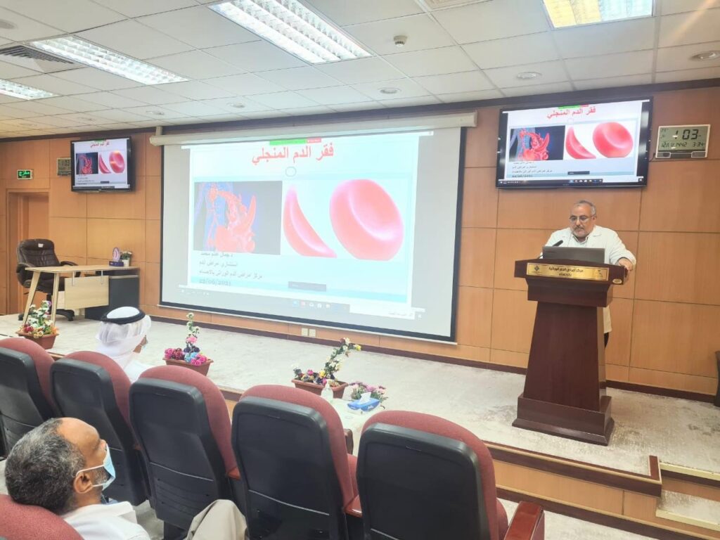 فعل مركز أمراض الدم الوراثية بالتعاون مع الجمعية الخيرية لمكافحة أمراض الدم الوراثية في الأحساء مناسبة اليوم العالمي لفقر الدم المنجلي 2021م، وذلك من خلال إقامة محاضرة توعوية عبر برنامج زوم عن هذا المرض ومضاعفاته وآثاره، كما أقام المركز أيضاً ركن تثقيفي في مقر المركز احتوى على بعض المجسمات واللوحات التوعوية، بالإضافة لتوزيع بعض الهدايا على المرضى.