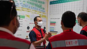 يواصل رئيس هيئة الهلال الاحمر السعودي الدكتور جلال العويسى جولاته الميدانية والتفقدية للوقوف على جاهزية واستعدادات الهيئة لموسم الحج لعام ١٤٤٢ هـ بمشعر منى، حيث اطلع على المراكز الاسعافية في المشاعر المقدسة و جاهزيتها، كما التقى خلال الجولة بمشرفي نطاق(منى)واستمع إلى شرح مفصل على جاهزية المراكز والكوادر البشرية والآليات المدعمة بها.